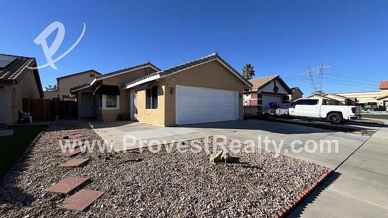 Welcome to this beautiful 3 bedroom, 2 bathroom house in Victorville!! Extensive tile flooring application encompassing the entire home. The spacious living area is distinguished by its optimal natural lighting. Thoughtfully designed kitchen offers extensive storage capacity and includes a comprehensive suite of stainless steel appliances: refrigerator, microwave, and range with oven. The primary bedroom offers ample space and is equipped with two wardrobes and a private bathroom! Guest bedrooms are of decent size. Fully fenced backyard, in house laundry with stackable washer and dryer, two car garage, and so much more. Close to schools, shopping and I15 for commuters. Pets may be considered, depending on type and number of pets, owner approval, 3rd party pet screening and increased deposit required. Lease term is twelve months. Renter's liability insurance required. Minimum deposit is equal to one month's rent; maximum deposit equal to two month's rent.