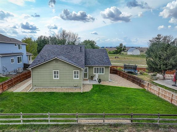 Welcome to your dream one-level home, nestled in a wonderful, quiet neighborhood that exudes a true sense of community. Just steps from your front door, a scenic path leads to multiple parks and trails—perfect for experiencing the best of Colorado year-round. With open spaces both in front and behind the home, you'll enjoy tranquility and privacy that few locations can offer. Step inside to an inviting open floorplan that makes every day feel spacious and connected. The kitchen, dining area, and living room all flow together into one bright, airy great room, perfect for entertaining friends or keeping loved ones close while preparing meals. Large windows fill the space with natural light, showcasing the beautiful views surrounding the home. Special features such as plantation shutters throughout, updated lighting, and the updated fireplace wall give this home a warm and cozy feel. And the unfinished basement is a blank canvas for you to add your own personal touches. The great HOA adds to the charm with regular fun events and food trucks, all within a short walking distance. Imagine savoring delicious cuisine while mingling with friendly neighbors! From your front yard and windows, take in the beautiful view of a city-owned barn and breathtaking mountain vistas that change with the seasons. Nature lovers will be thrilled with frequent sightings of bald eagles and owls, making everyday moments feel extraordinary. Despite the serene setting, you're conveniently close to major shopping areas, restaurants, and grocery stores. Quick access to the toll road, interstate, and major highways means you're never far from where you need to be—yet distant enough that traffic noise is a thing of the past. This home isn't just a place to live; it's a place to love. Come see for yourself why the sellers cherished every moment here. Your perfect blend of convenience, comfort, and serenity awaits!
