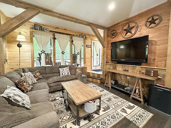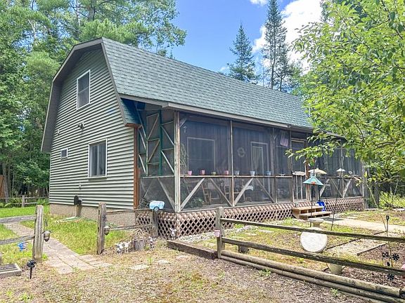 Built in 1990. Completely renovated, top to bottom, within the last 5 years. Modern Industrial Cabin, Gambrel Roof Style. 2 story, 3 bedrooms, 1 bath home offering 1,248 square feet of open living space, screened in front porch, and comes fully furnished. Upon Entering the home, you step down into the living room and see the beautiful hardwood floors, the hand hewn beams, and beautiful wainscoting walls. All new recessed lights have adjustable light mode. The river rock, behind the wood stove, was pulled locally. Industrial spiral heating and AC duct runs throughout the dining room and kitchen area. Hickory cabinets, Quartz countertops with subway tile backsplash, LG SS appliances and deep sink. 11 by 6 Full bath and laundry combo. SS stackable washer and dryer. main floor, 11x11, bedroom with hardwood floors. 12x15 Upper level bedroom. The entire upstairs has new carpeting. Second bedroom is 13x15. Closet has two barn doors. 10 foot tall privacy fence installed in 2022. Asphalt shingle roof 2018. Well installed in 2015. 1 car detached garage, with a shop on the other side. 1.24 acres. Updated Electrical and PEX Plumbing 2019. Natural gas furnace and AC unit 2020. Too many features and updates to mention. Just down the low traffic gravel road, less than 1/2 mile away are Hubbard Lake amenities, such as restaurants, grocery, gas station, and the North End Hubbard Lake Park and boat launch. Spend the day on the lake! Everyone will love the crystal clean, and clear, waters of 8,850 Acre all sports Hubbard Lake for fishing, boating and water sports. Approximately 30 minutes to Alpena. This is truly the affordable, up north get-away. This property has so much to offer and is move in ready. The perfect "starter" home, or an affordable up north 2nd home close to the lake.