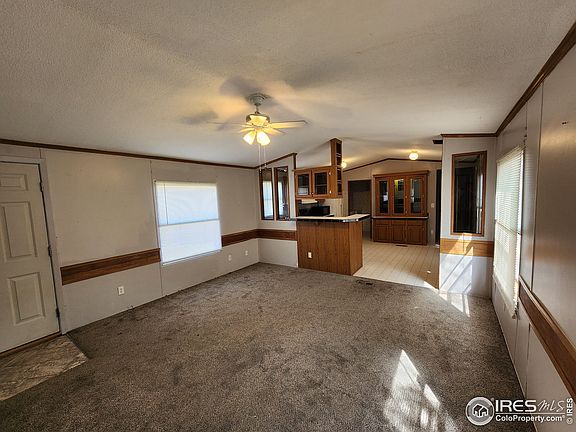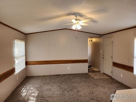 NICE MOBILE WITH 3 BEDROOMS AND 2 FULL BATHS. MASTER HAS WALK-IN CLOSET PRIVATE BATH WITH LARGE GARDEN TUB. TWO BEDROOMS ON OTHER END OF HOUSE WITH A FULL HALL BATH. LARGE LIVING ROOM, REALLY NICE KITCHEN WITH BUILT-IN CHINA HUTCH AND EAT-IN AREA FOR DINING TABLE, UTILITY ROOM WITH EXTRA STORAGE OFF KITCHEN. SMALL FENCED AREA IN BACK. CENTRAL A/C. THERE WAS A SMALL EXTERIOR FIRE. INSURANCE CLAIM SUBMITTED WITH DAMAGE AREA BEING REPLACED AND REPAINTED INCLUDING SIDING, NEW FRONT DECK AND ROOF. PROPERTY WAS USED AS A RENTAL AND FIRE STARTED FROM SMOKING OUT FRONT AND CIGARETTE SMOLDERED IN DRY POTTING SOIL. SELLER IS A LICENSED COLORADO REALTOR AND ACTING AS AGENT FOR SELF.