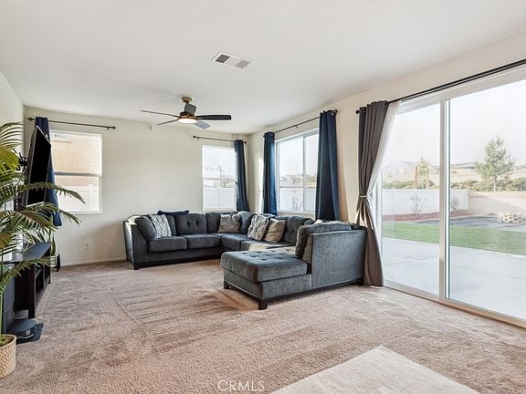 Welcome to this 4-bedroom, 3-bathroom home with beautiful views of the San Gorgonio Mountains! This well-maintained property features a thoughtfully designed floorplan with a convenient downstairs bedroom and bathroom, perfect for guests, multi-generational living, or a home office. The open concept kitchen offers ample counter space and storage, while the living room is filled with natural light from its many windows. Upstairs, the generously sized primary suite offers impressive mountain views, a dual-sink vanity, and a walk-in closet. Down the hall, you’ll find a laundry room, two additional bedrooms, and their shared full bathroom. Located on a nearly 9,600 sq. ft. lot with no neighbor directly behind you, the backyard offers added privacy and features vinyl fencing, a block wall, and ample room for a pool or RV parking. Benefit from over $35,000 in upgrades, including custom concrete work, lush green grass and landscaping, and a fully installed irrigation system. Enjoy the added bonus of PAID-OFF SOLAR PANELS, providing energy savings and efficiency. Conveniently located just around the corner from Sundance Elementary School and a mile from the 10 Freeway, San Gorgonio Memorial Hospital, shopping, and dining, this perfectly positioned home is ready for you to move in and enjoy! Don’t miss this incredible opportunity!