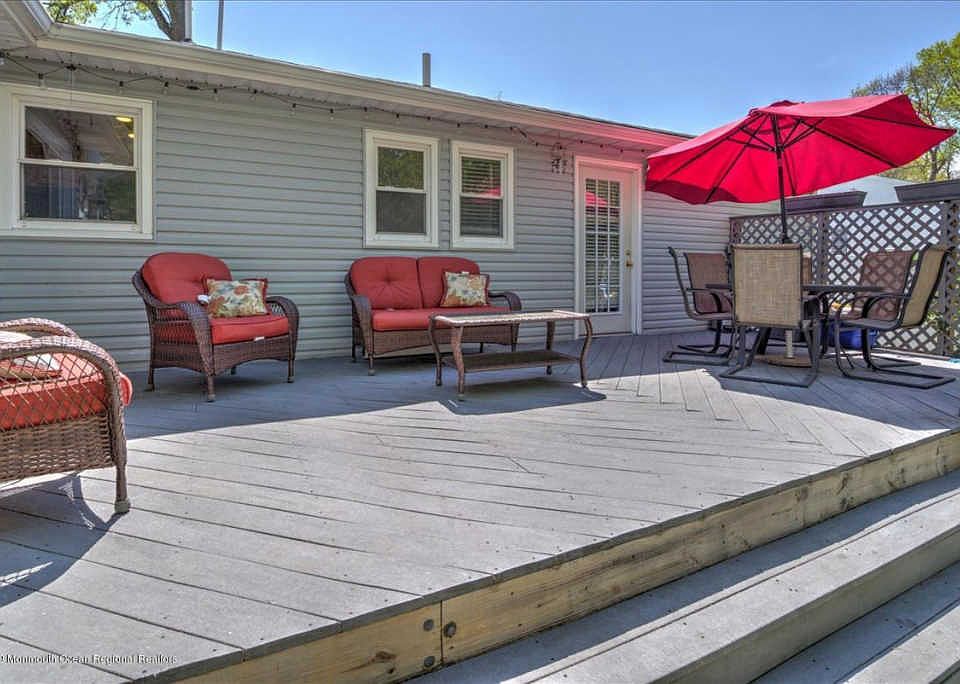 Lovely three bedroom, two full bath Ranch where beautiful curb appeal is just the beginning. Spacious, freshly painted living room and dining area have refinished hardwood flooring and crown molding. Newer kitchen with maple cabinetry, silestone counters, stylish backsplash, six burner stove and recessed lighting. Cozy family room complete with brick, gas fireplace and sliders to expansive 24x14 Trex deck and fully fenced, amazing back yard, large enough for all of your summer gatherings. Two redone baths. Full basement waiting to be finished or perfect for storage. Energy efficient hot water baseboard heat, newer furnace, hot water heater, newer vinyl windows, garage door and solar panels (leased) make this home energy efficient and budget friendly!