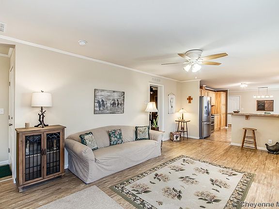 Amazing horse property located only ten (10) miles from downtown Cheyenne! This 2014 built modular is a rare find. The open floor plan joins the living, kitchen and dining areas for the perfect entertaining space. The kitchen includes a high-end stainless appliance suite with a gas range, large breakfast bar, and abundant cabinet space. The huge master includes a 5 piece bath and walk-in closet. Fenced pasture and loafing shed will please your critters. Immaculate condition!