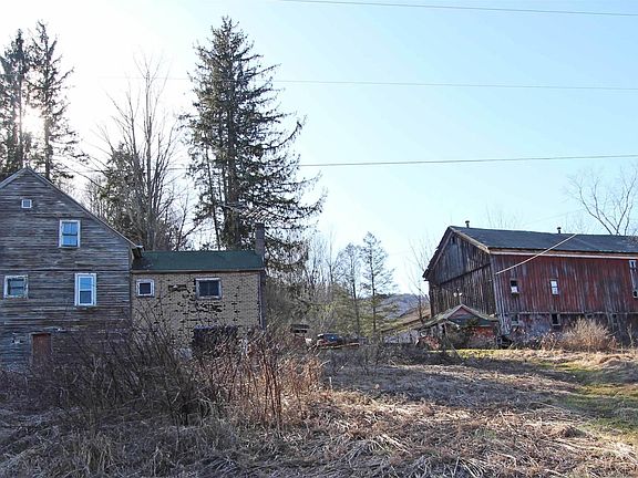 This 1900s ROXBURY FARMSTEAD ON 29+ ACRES consists of 2 parcels, is bordered on 2 sides by DEP land, contains a 2+- ac pond, and is bordered in the back by a trout stream--also has 1375 feet of town road frontage. The house and dairy barn need substantial work, but this is a great opportunity to rehabilitate this unique property--the panoramic views from all locations on the property are exceptional, and it is located just minutes from the "happening" town of Roxbury. (Roxbury Arts Group, Roxbury Lodging Group, restaurants, coffee shops, new grocery store, Plattekill Ski Center). The 2516 sq ft farmhouse consists of two floors, a large country kitchen, dining/sitting area, living room, den, 4 bedrooms and one bathroom. It needs a full reno and a roof. There is a DEP septic system and a drilled well. The large dairy barn needs a roof. Some brush-hogging would bring the fields (90% fields, 10% wooded) right back. Lots of deer sign, bear, turkey--a deer blind on the property. This is a great one-of-a-kind opportunity for the right buyer.