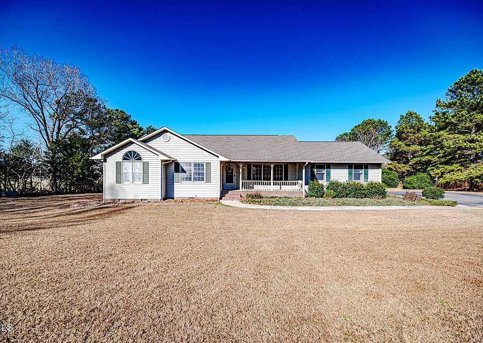 No City Taxes! Welcome home to this one owner ranch home on 1.65 acres! Living room with fireplace, separate dining room, kitchen with breakfast area, spacious primary bedroom and bath with 2 walk in closets, 2 additional bedrooms and full bath. Large garage, storage building and beautiful setting with blueberry bushes, mature landscaping, rocking chair front porch and only minutes to schools, shopping and more!