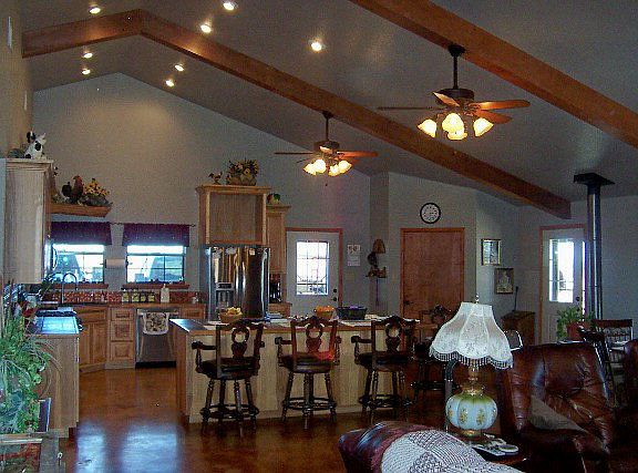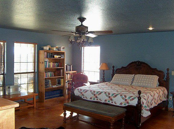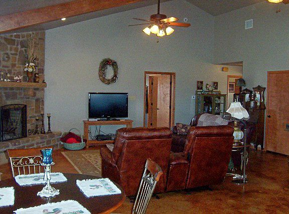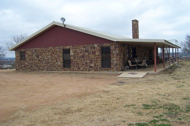 Split two bedroom, two bath residence with office (could be 3rd bedroom) located on approx. 4 acres just outside city limits of Mason. Outstanding hill top view of the city of Mason. Steel frame construction, stone exterior and metal roof. Great room with vaulted ceiling and fireplace encompasses kitchen, dining/living area. Stainless steel kitchen appliances. Stained concrete floors. 20x20 master bedroom. Roomy utility and boot room. Attic storage. On demand gas hot water heater. Ceiling fans, Carrier CA/CH system. Full length front porch.