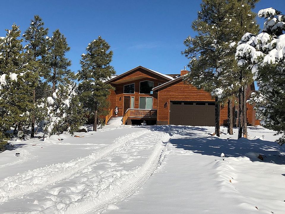 Beautiful homesite for your custom cabin! This 0.85 acre site has underground power, water and sewer to the lot line (private sewer system) so no septic system. Towering mixture of Ponderosa, Pinon & Juniper trees on a quiet low flow traffic road. Mild HOA to protect your investment. Buy now and build later. Priced to sell