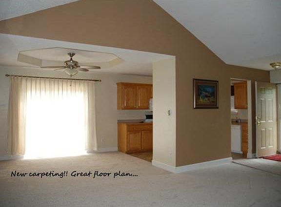 Great home with beautiful property! 5.75 acres ready for animals or your horses. Lots of trees, owner's have added a new deck, perfect for entertaining! Large back patio across the back of the home, stained and great place for hanging out as well. New carpeting throughout, lots of neutral colors. All you have to do is bring your things! Open living room/dining room. Fireplace is the focal point in the living room. Basement could easily be finished for even more square footage (stubbed for bath)