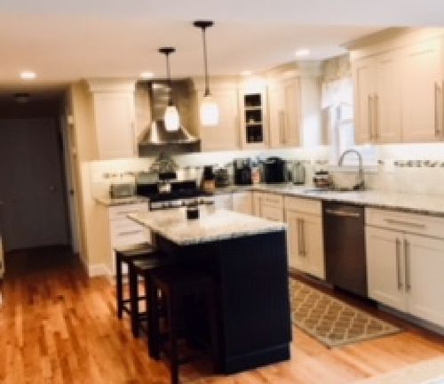 • Kit Dscrp: Flooring - Wood, Countertops - Stone/Granite/Solid, Breakfast Bar / Nook, Recessed Lighting, Remodeled, Country Kitchen