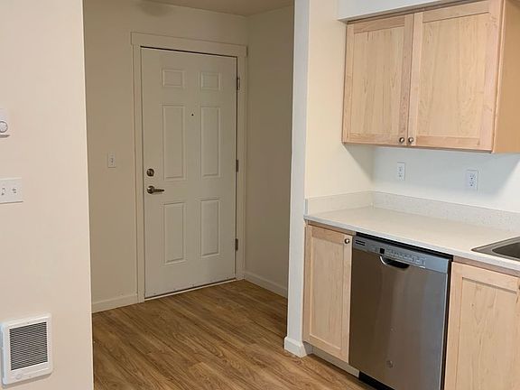 This unit is a 2-bedroom 1 bath unit with a walk-in closet in the master. This is a top floor unit with vaulted ceilings and a balcony! Pacific Rim Apartments is a beautiful multi-family apartment complex located conveniently near all your shopping needs and HWY 101. This property has a secured entrance, interior hallways with elevators in both buildings. Each unit comes equipped with upgraded stainless-steel appliances along with a stacked washer and dryer, A suitable kitchen with quartz countertops and shaker cabinets, and completed with luxury vinyl planks (no carpet). Tenants have access to a dog wash station and the possibility for a separate climate-controlled storage unit located on site for a nominal fee. Tenant is responsible for Electricity, Water, and Sewer. Parking is assigned. Pets allowed ( 50lbs. along with breed restrictions) Mail located inside entrance. Non smoking property.