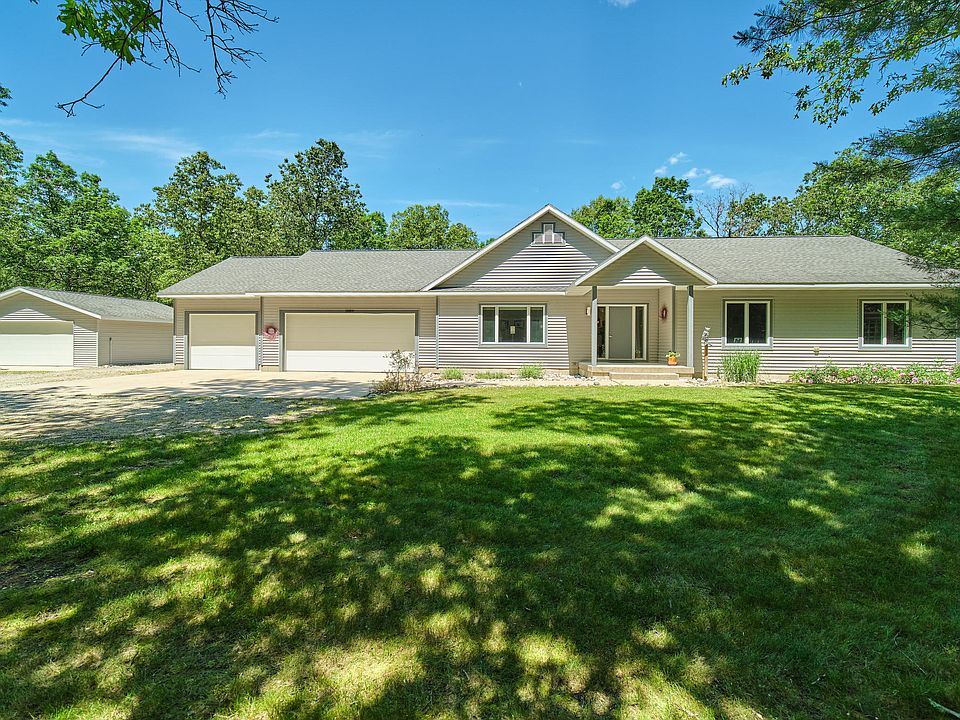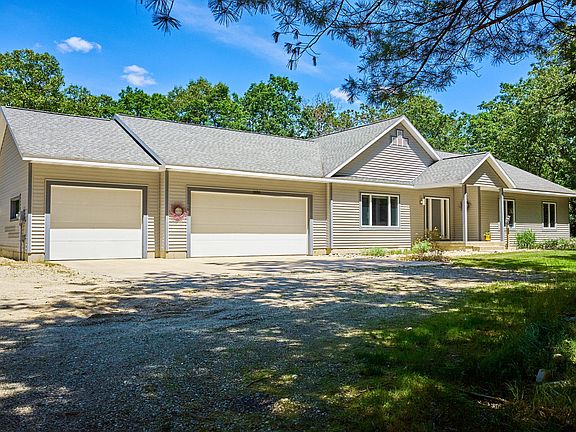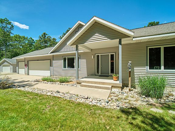 A hidden paradise awaits! This Custom built home on 10 secluded acres will be hard to leave. Set back down a winding driveway, is a 2004 built masterpiece. 2,175 Square feet contemporary home with 3 bedrooms, 2.5 bathrooms, main floor laundry, master suite, living room and family room, custom kitchen, custom windows, vaulted ceilings, and amazing flair. The full basement is waiting to be finished, with 9ft ceilings, an egress window, poured walls, and an additional 2,175 square feet. Plenty of room for vehicles and toys with a 3 car attached garage, plus a 2 car detached garage. The fenced in backyard will draw you in, completely surrounded with beautiful perennials, back deck, and a fully screened in gazebo for bug free enjoyment. Home has been meticulously maintained over the years.