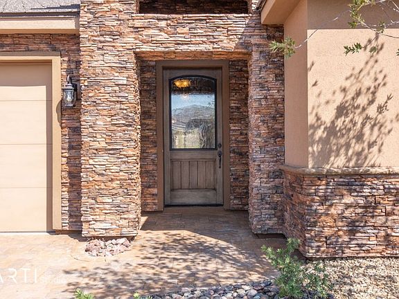 FOR SALE 1,917 sf home featuring 2 Master Bedrooms with walk in closets, a third Bedroom/office. The home has wonderful curb appeal and a warm feeling as you enter the home. Very spacious open floor plan surround sound indoors/outdoors, 2x6 construction and is in the exceedingly popular gated community or Royal Vista. The kitchen is fully upgraded with granite countertops, soft close knotty alder cabinets, a large pantry, and Stainless-Steel Kenmore Elite Appliances. From the kitchen look over the breakfast bar to the Great room accompanied by a nice dry bar with a wine cooler, wine rack and the same beautiful cabinetry. Large covered back patio with high cinder block wall and landscaping. Garage has numerous cabinets, epoxy floors and an extended left side that houses the water heater, upgrade water filtration system and water softener, perfect for a workbench. There are two HOA and the total dues combined is only $110/month and includes Management, Road Maintenance and Front Yard Maintenance. Come and enjoy Mesquite, Nevada, with its many great golf courses, CasaBlanca Hotel-Casino-Spa and Eureka Hotel-Casino-Spa. Las Vegas, NV is 8 miles and St. George, UT is 35 miles.