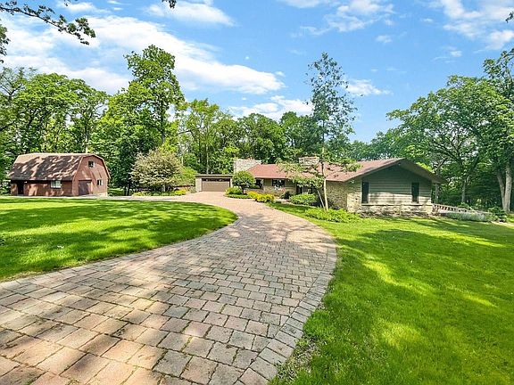 Gorgeous Property on Over 2.5 Acres featuring a Sprawling Ranch Style Home with Attached Garage and 2 Detached Garages. Great Outdoor Spaces & Good Use of Space Inside. Kitchen is Open to Dining Room with Fireplace and Overlooks the Beautifully Custom Designed Driveway & Rear Tiered Patios on a Wooded, Private Lot. Efficient & Economical. Lower Level is Fully Finished with Additional Family Room and the 3rd Bedroom & 2nd Full Bathroom.