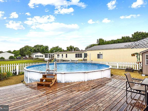 PASTORAL RANCHER with a COASTAL FLAIR! Celebrate the seasons with a TIERED TIKI BAR DECK, ABOVE GROUND POOL, SLING CHAIR POOL HOUSE, HOT TUB NICHE, and GLASSED 3-SEASON SUNROOM! DETACHED 2-CAR GARAGE GAME ROOM (TV, billiard table, kegerator, & fridge CONVEY! Heat & A/C). Verdant .88 acre facing woodland & farms with sprawling fenced rear yard for barbecues & outdoor movie screenings! Manufactured home with NEW roof (2021) & Andersen replacement windows. Move-in neutral paint & carpeting, open concept floor plan, & skilled built-ins. Vaulted Living Room with built-in entertainment center. Family Room/Den with gas fireplace glow. Formal Dining Room & roomy eat-in Kitchen. 3 Bedrooms ALL with walk-in closets & ceiling fans. Possible Home Office with separate deck entrance! Updated & well-appointed Primary & Family Baths. Laundry/Mudroom with separate entrance. 4 Outbuildings 3 with electric service; 2 currently serving as Fitness & Hobbyist getaways. One 12x20 shed with dog kennel/short runs, ceiling fans, & mini-split A/C & heat. Paved multi-vehicle driveway/expanded camper parking/regulation pickle ball court! Prime location between Seaford & Georgetown County Seat. Easy access to RTs 9/1/13/50. THE BEST OF SERENE SINGLE LEVEL LIVING!