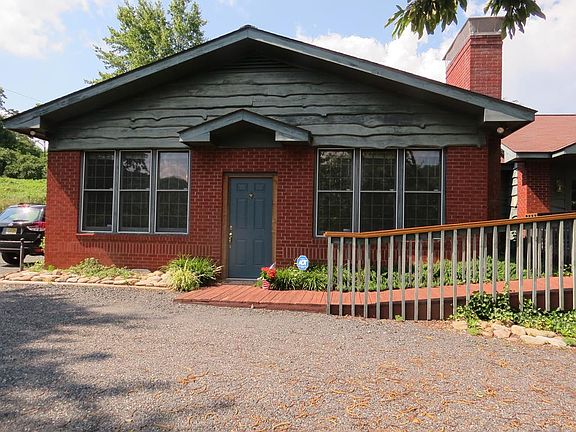 Rare Opportunity - Own Brick 2BR/2BA Home w/attached space for studio/workshop just 1/4 mile from Blue Ridge Parkway! The Home was built 1955 by famous blacksmith Bea Hensley & is adorned w/his signature ironwork. The addition built 1993 for studio has great access from home plus double door entryways from outside and previously used as Gallery/Antique Shop. Main level finished w/hardwood floor, cathedral ceiling plus large brick fireplace & 1/2 BA w/handicap entry from driveway. Unfinished lower level basement is open space w/concrete floor, painted block walls, unfinished overhead, brick fireplace & unfinished space for 1/2 bath. The original brick home is warm & inviting w/hardwood floors, solid T&G wood paneling, 3 FPs and more! Many options for artists' workshop or remote workers!