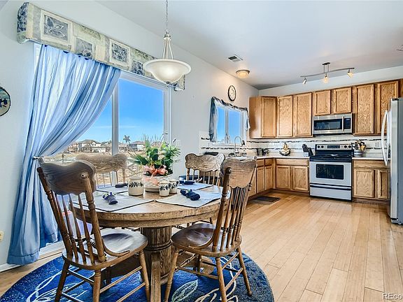 ...Gorgeous and well loved home for sale in sought after Buffalo Run community. The welcoming entry of this house and living room has a 2-story vaulted ceilings give you a feeling of space and comfort. Feel the warmth of natural sunlight radiate in from ample windows, and cuddle up next to the fireplace in the family room on the chilly Colorado nights. Main floor boasts mostly wood floors. The kitchen flows into the family room, which is great for entertaining. The main floor is finished off with a powder room. The upstairs has a master bedroom and bathroom, as well as two additional bedrooms and a shared bathroom. The landing at the top of stairs could be used as office space, play area or a nice place for relaxing. Heading outside to the maturely landscaped and fully fenced backyard, backing to the amazing park!!! Perfect for relaxing is the oversized patio to sit and enjoy the beautiful Colorado weather. Pride of ownership exists throughout! Freshly painted and New carpet!!! Showings start Friday 3/18/2022