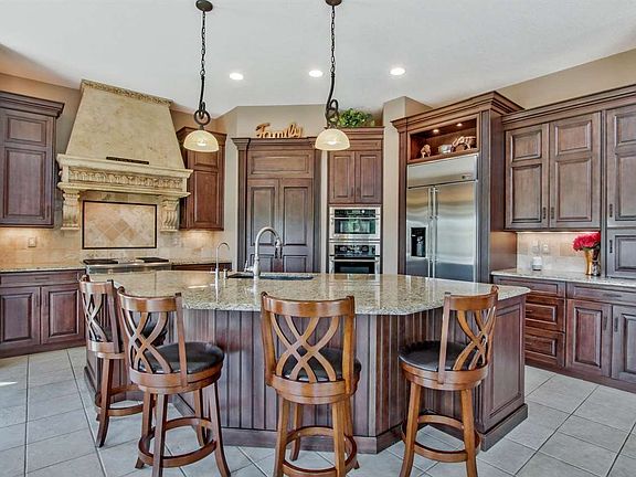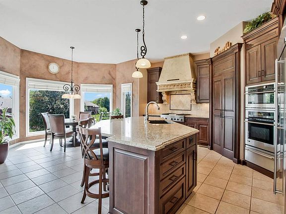 Where can you find a waterfront home sitting in the Andover school district on almost a 1/2 acre lot with 6 bedrooms plus an additional office and pool for such a great value? This home sits in the highly desirable Savanna subdivision that offers exquisite homes with no special taxes and approx 5,000 sq ft of living space to enjoy with new roof that was just installed in 2017. The sellers fell in love with this home from the moment they entered because of the extended height ceilings, large windows offering tons of East facing natural light in the morning with remote control custom blinds on the upper windows to allow just the right amount of ambience for the room. As you enter this exquisite home you will see the large open floorplan with fireplace in the living room that leads all the way to the ceiling of the upper level, completely remodeled kitchen redone by Kitchen Concepts with custom range hood, gas range, large island with granite countertops, commercial fridge, walk in pantry built into the cabinetry, and so much more. This kitchen is a true chef's delight and great for entertain guest at the island, eat in dining area or even the formal dining space. On the main level are a full bath and 1/2 bath with 1/2 bath being for guest and full bath being right next to the main level bedroom for easy access for guests wanting to not stay on upper level. The main level also has a great office space and main level laundry. On the upper level are 4 bedrooms and 2 baths with the master suite taking the entire South wing of the upper level and offering a large walk in shower, tub and closet space galore. In the basement, the sellers have a 6th bedroom, bath, storm/ safe room, newly finished theater room just perfect for the adults to get away to and a great wet bar with perfect access out to the outdoor kitchen area and pool/ hot tub area. The pool located just beside the water is exquisite and offers a waterfall feature, automatic vacuum, and works with an ozonator instead of chlorine or salt. Come see this great home today with its incredible views before it is gone.