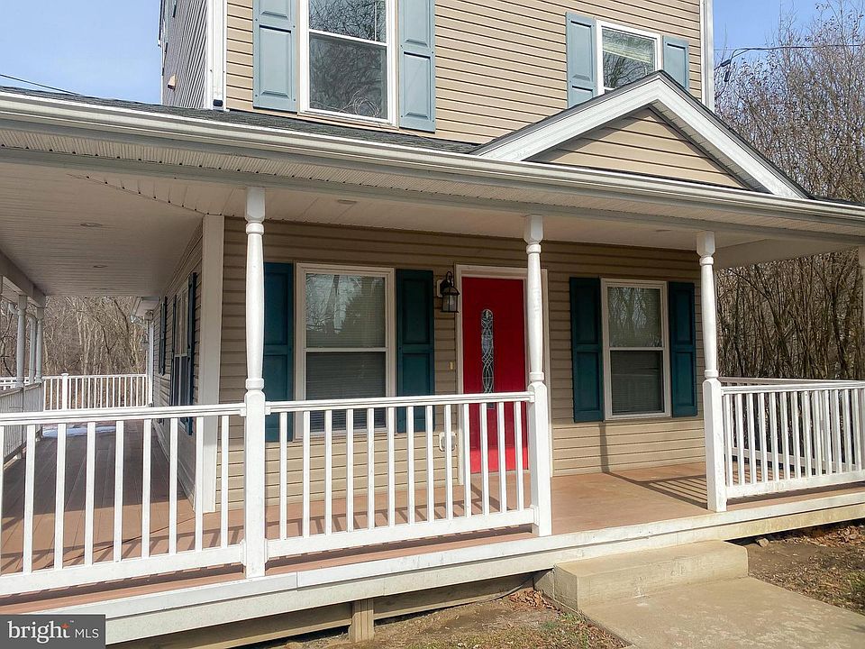 Remodeled country home on 3 acres with wraparound porch/deck and detached single car garage. Gourmet kitchen with upgraded stainless steel appliances, custom maple cabinets, granite countertops, eat-in island, Brazilian hardwood floors on main level. Spacious living room with vaulted ceilings and French doors leading to trek deck overlooking private backyard with creek views. Second level includes 2 bedrooms, full bath, and laundry room. Large primary bedroom with vaulted ceilings, walk in 5x9 closet, and en-suite custom bathroom featuring marble floors, double vanity, separate custom marble shower, and large soaking tub. Over 1700 sf of living space. AS-IS condition!