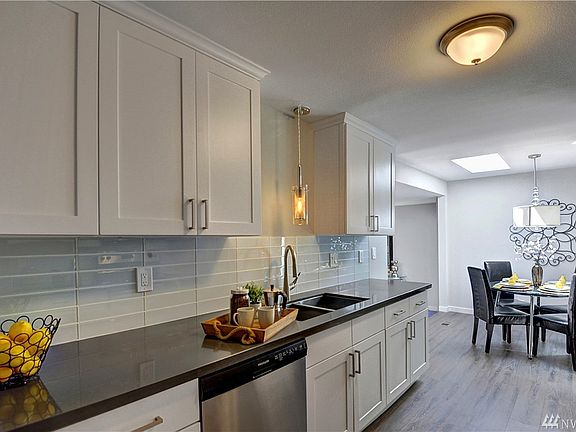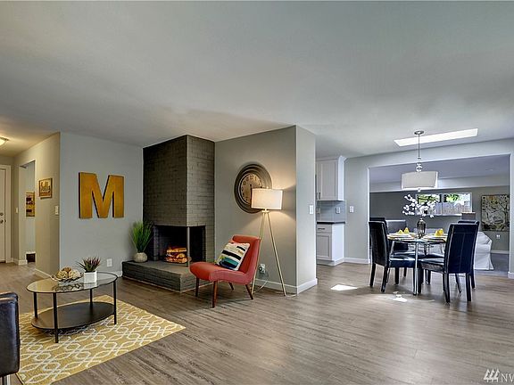 Welcome to this bright elegantly remastered rambler with an abundant amount of upgraded features throughout! The facade of the home greets you w/brick and traditional wood materials. The home features stylish new finishes and redesigned spaces: bright living room, handsome fireplace, skylights, custom remodeled baths, large new windows, redesigned kitchen w/quartz countertops, tile backsplash, equipped w/new SS appliances. Spacious great room equipt w/wood fireplace/stove. Great Issaquah Schools