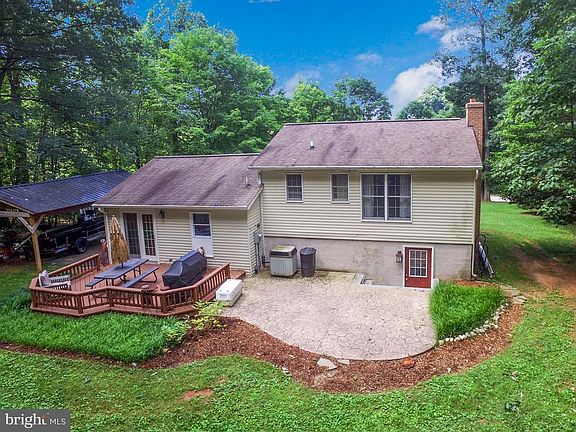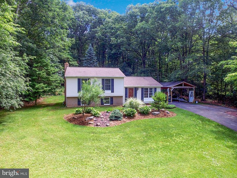 Nearly 1 acre of private bliss. Drive back the long driveway to lead you to this ready to move in home with mature landscaping, private rear yard & tranquil setting. Completely remodeled inside with open flowing floor plan between the kitchen, dining & living room areas. Kitchen to include all stainless steel appliances & the rare copper farm style sink. Master bedroom with barn door into walk in closet, a bonus closet & full bath. Enjoy the lower level family room complete with wood burning fireplace. Walk out to rear paver patio & rear deck to enjoy what nature has to offer! Covered parking pad along with large shed for storage. WOW, this is one of a kind!