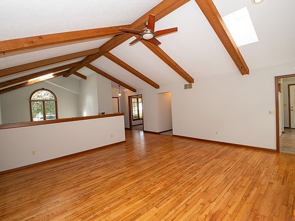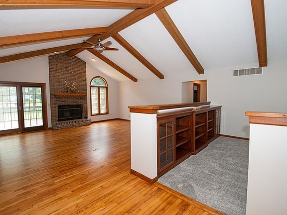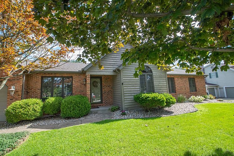 Terrific custom ranch on quiet lot just down the street from Juday Creek Golf Course. Tastefully updated guest bath, new carpeting on the main level, freshly painted throughout with the right colors. Beautiful great room w/ cathedral ceilings, fireplace and newly refinished hardwood floors. Open concept to a convenient den / study area with extensive built-in bookshelves and an appealing 1/2 round window. Master bedroom and bath with walk-in shower. Light and bright eat-in kitchen, pantry and all appliances remain. Formal dining room plus a very comfortable 3 season room for relaxing. Large rec room in the lower level is perfect for a kid's game area or media space. Make sure to check out the cedar closet for your extra wardrobe. Deck out back for entertaining with friends and family plus a large yard for gardening or a good ball game. Two car garage and ample storage, shed out back for all the 'extras'. New furnace 2019.