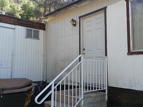 Mobile with legal room-addition. Woodstove, Fruit trees, entry gate, fenced. Nice views from big living room windows. Lot next door for sale also for $15K. Square footage of home per owner, buyer to verify. As-Is sale, Cash Only. Not a rental, owner has lived in home since 1990.