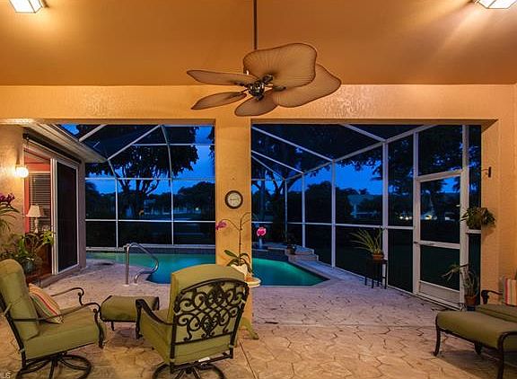 Live the Lifestyle in your own pool home, so close to beaches & famous Islands of Sanibel & Captiva. Fabulous layout with all the right spaces. Florida Single Family home is Nestled along the golf course fairway #7 in the lively community of Gulf Harbour Yacht Golf & Country Club. Screened Lanai & NEW Resurfaced Pebble Tech Pool are private with E & W Exposure for Winter Sun. Largest, most Desirable 1 story villa home with 1837 s.f. under air. Den with French doors could be your 3rd bedroom. Engineered Wood flooring Ceramic Tile throughout, Open Kitchen Granite Counters, NEW back splash & Stainless Appliances, Frameless Shower Doors both baths. Plantation Shutter Windows Lanai & Master Bed Doors. Countless other details join together in this home that is simultaneously aesthetically inviting & secure. Laundry room-Washer & Dryer 2015, Water Heater 2016. AC 2013, Garage has lots of Storage. Entry Foyer is Screened. Amenities of golf, tennis, fitness, dining, marina available at an additional. Location is awesome as it's close to beaches, shopping, fine restaurants, casual waterfront dining, theaters, SW Fl International Airport, Playgrounds, schools, parks, dog parks & more.