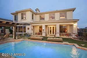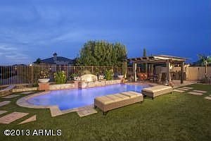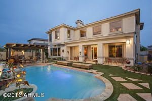Spectacular describes this one of a kind home located in The Village at Litchfield Park! The owners carefully selected some of the finest finishes to adorn this amazing home and enhance its beauty & architectural details. Surround yourself in the lap of luxury, from the elegant Rotunda Foyer that shines with a 24k Gold Leaf gilded ceiling, the grand staircase that is lined with laser carved tile imported from Spain, carved Cantera stone fireplace, impeccable wood floors and natural stone tile accents, this home is elegant luxury from top to bottom.