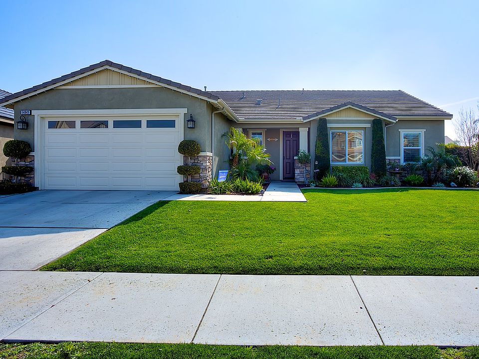 This beautifully upgraded home that looks and feels like a model is situated in a desirable neighborhood of Eastvale. 3 Bed, 2 1/2 Bath 2058 sq. ft. with an office that possibly could be converted to a 4th bedroom with building department approval, 3 garage tandem garage, Large block and vinyl fenced backyard that also features an alumiwood covered patio and bbq area for those friendly gatherings. This property has it all from SOLAR to the whole house fan to help with the energy costs, granite countertops, glass backsplash, wood flooring, recessed lighting, plantation shutters, ceiling fans, crown molding, shiplap wall finish, 8x8 custom tile, matte black fixtures, custom built sliding barn door in the master. Very family oriented nieghborhood, HOA puts together many activities at the park just down the street such as movie in the park!