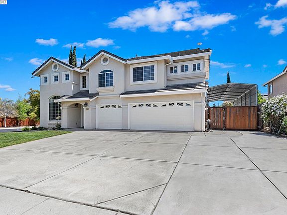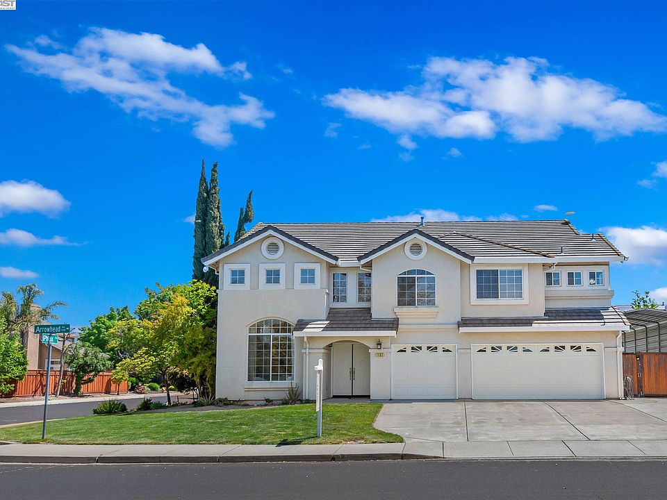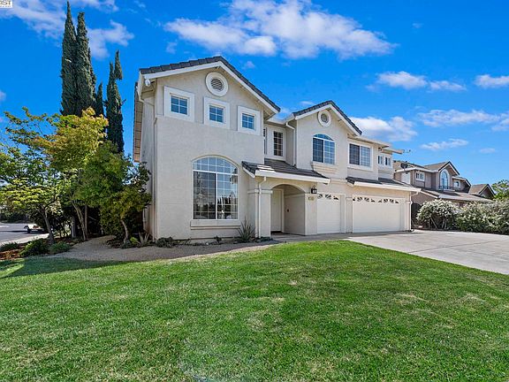 Stunning Executive Home on a large corner lot and located across from neighborhood park and walking trail. Desirable floor-plan with 1 full bedroom and 1 full bath downstairs. Let the WEST FACING double doors welcome you into this stunning home featuring two story vaulted ceilings, abundant natural light, tile and hardwood floors, new LED recessed lighting, and new carpets. Chef-style eat-in kitchen with gas range, solid surface counters, island, and slider to backyard. Family room features two story ceilings, fireplace and custom built-in desk and shelving. Abundant storage with full THREE CAR GARAGE, custom storage shed, plus a HUGE SIDE YARD w/COVERED RV parking. Primary suite with vaulted ceilings, two closets and large en-suite bath with separate soaking tub and walk-in shower with new seamless shower enclosure. DO NOT MISS THIS STUNNING HOME!