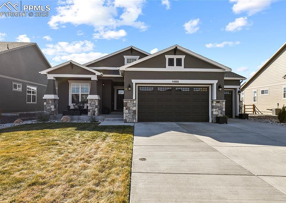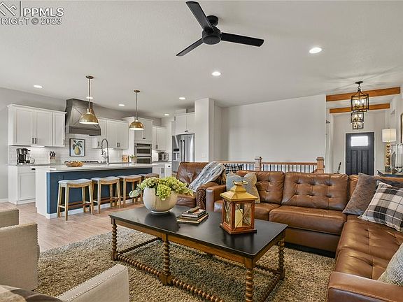 Welcome to this stunning ranch-style home with gorgeous views of the front range. Step inside and be captivated by the spaciousness, inviting ambiance, and impeccable professional decor. The kitchen is a chef's dream, featuring granite countertops, big farm sink, built-in oven & convection oven/microwave, a gas cooktop, a beautiful, hooded vent, walk-in pantry, and a generously sized island for culinary creations. The Open floor plan with the big living room & gas fireplace plus the walk out dining area make this home ideal for entertaining. Also on the main level, you'll find a second bedroom or use as a private office and 3/4 bath. The luxurious primary bedroom with ensuite that has a large, jetted bath, Double sinks and quartz counter tops with designer lighting, Glass walk-in shower and large walk-in closet. Descending into the inviting basement, you'll discover 9' foundation walls and big windows allowing plenty of light, a sizable rec room with a bar, three more large bedrooms, and a full bath. Outside, the fully landscaped front and backyard offer an idyllic setting, while the fenced-in yard ensures privacy. Take advantage of the breathtaking mountain views from the expansive 15X10 covered back patio, and benefit from the 4' front extension of the 3-car garage, which provides ample space for large vehicles, toys, or even a workshop. Easy access to the lake and walking trails. Don't miss out on the opportunity to call this remarkable property your new home! Situated in the heart of Monument, this property offers easy access to a variety of amenities. Explore the charming local shops and restaurants or take advantage of the nearby parks and recreational areas, perfect for outdoor enthusiasts. Conveniently located 13 minutes from the Air Force Academy and 5 minutes from Downtown Monument. Easy access to I-25 making a quick commute to Colorado Springs or Denver. Be sure to check out this gem!