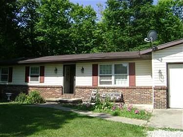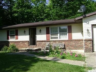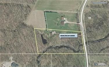 Wooded, private 5 acre parcel. Creek runs thru, outdoor wood burning furnace, great pond, patio. Red storage barn on Right is not on this parcel. Southern boundary is across river - marked by railroad tie.