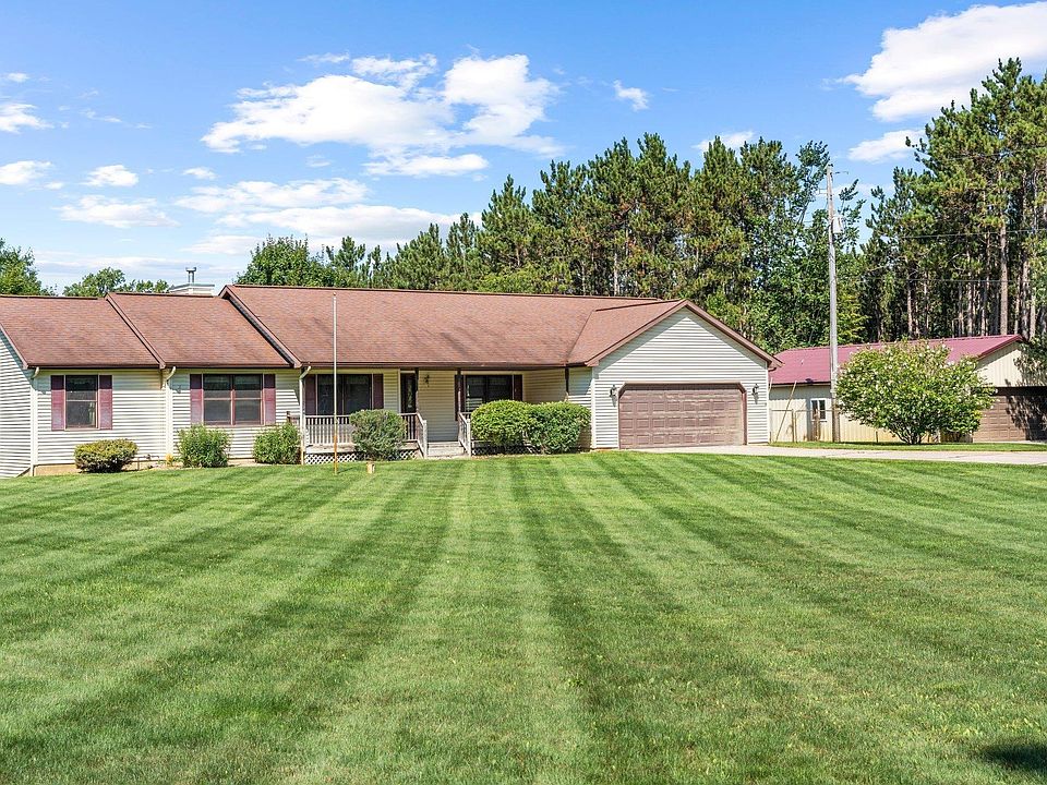 4 bed/3.5 bath walk-out ranch on 8+ beautiful private acres, close to TC! Lovingly maintained and spacious with an excellent floor plan, this home features Central A/C, a Primary suite with a sizable walk-in closet and en suite bath, main floor laundry, in-ground irrigation, and a finished walk-out basement that includes a large family room, 2 additional bedrooms, a full bath, fruit cellar, a work shop, and ample storage space. Attached 2-car garage plus a large pole barn on property for additional storage/toys.