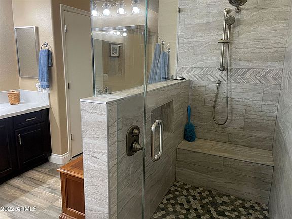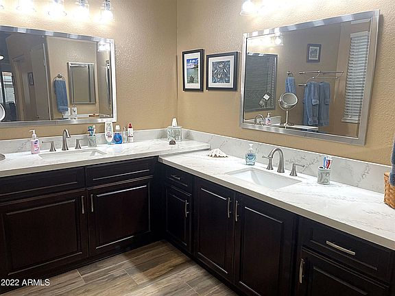 BIG $$ reduction!! One of Chandler's rare gems is on the market and the time to schedule your viewing of this recently upgraded home is now! 1-level, 3-bdrms +den, 3-bthrms & 3-car-gar on a prime corner lot in a highly sought-after neighborhood-NO HOA. Offering top of the line appointments in a comfortable setting. 2 lg family living areas, & 2 generous ensuite masters, one with a lounge area, make this special floorplan the ideal mother-in-law setup. Plus guest bedroom and office = lots of space and tons of storage. Over $150K on improvements and upgrades, including wood-look tile flooring, upgraded counter tops, completely renovated kitchen with an island and breakfast bar, separate beverage center with a built in 'Cool' fridge that flows into the living space perfect for entertaining...