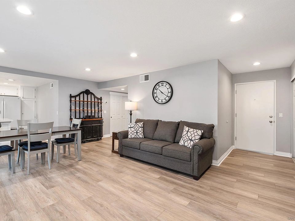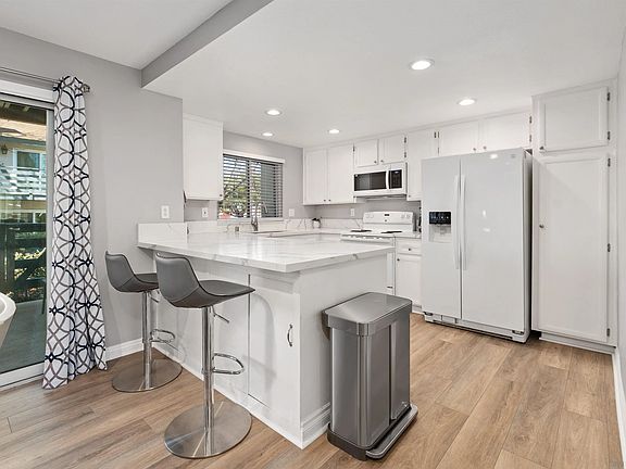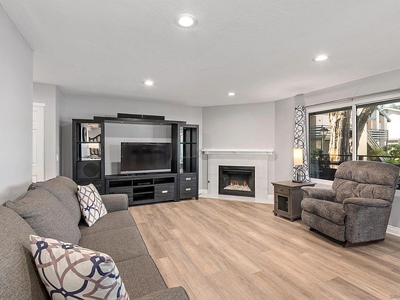 This tastefully upgraded Granite Hills single-level, end-unit condo has a wonderful open living room with brand new laminate flooring throughout. Updated kitchen with quartz counter tops, renovated bathrooms, gorgeous fireplace in the living room, recessed lighting, and private outdoor patio space. Primary suite has large walk-in closet. Unit shares only one common wall, has dual pane windows & sliders, washer and dryer, and A/C. Unit comes with a detached single car garage plus one assigned parking spot and two areas for RV or boat parking. This VA & FHA approved complex also has two pools two hot tubs, and BBQ area. Walking distance to shopping and restaurants. Move-in ready for its new owners!