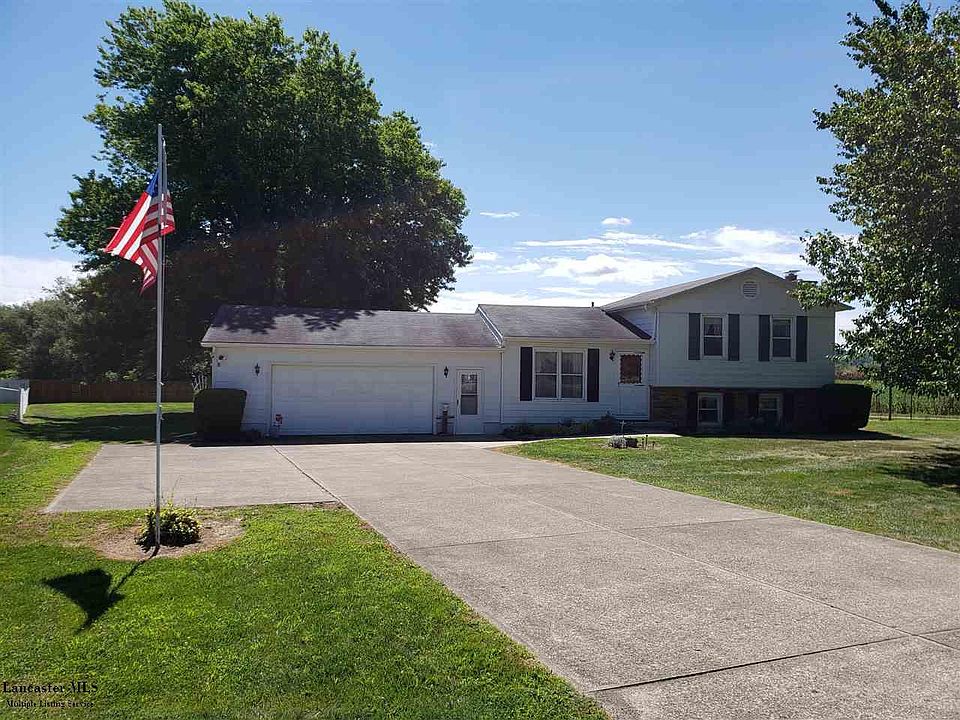 3 Bd, 1 Bth, Split level on a beautiful, flat lot. There is a large covered patio behind the garage.