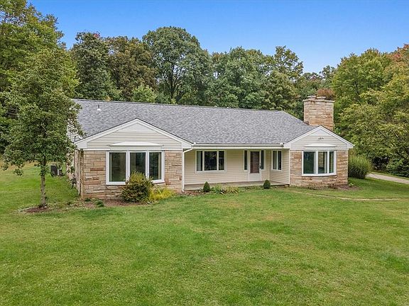 Amazing location! So much potential to make this one level home and acreage your own. This 3 bed and 2 full bath stone ranch, detached 2 car garage sits on over 2 acres private acres in the heart of Allison Park. Entirely one level living! Lot backs up to North Park. Large rooms, open floor plan, huge windows filling the house with natural light. Huge enclosed sunroom with fireplace provides extra space for entertaining. Brand new roof. Updated siding. Make this fabulous opportunity your new home!