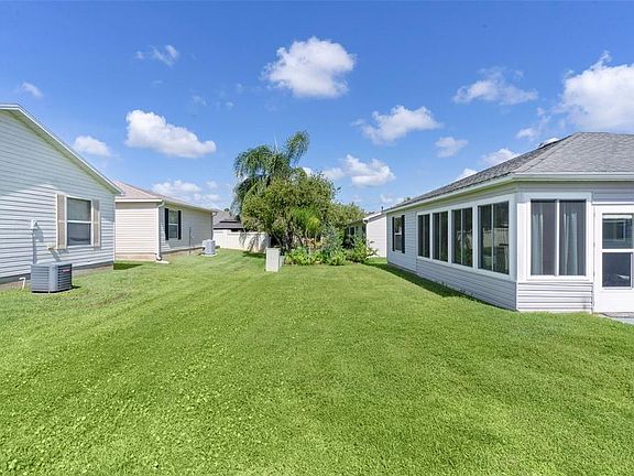 One or more photo(s) has been virtually staged. No "kissing Lania's" here! This lovely home is provided privacy, but not with a wall or a swamp! Your new home backs up to a patio villa, in which the lanai is at the FRONT of the home (meaning there is not a lanai backing to yours)! This gives YOU the PRIVACY you are desiring! “Between the 66’s!” Five miles or less to Lake Sumter Landing and Brownwood where you can enjoy year-round live music, dancing, shopping & dining! The Village of Duval is just around the corner from the Seabreeze Regional Recreation Center where residents can choose from a wide range of activities such as cards, ping-pong, line dancing, “tennis-volleyball”, bocce, pickleball & more! The sports pool is a high attraction for lap swims, water volleyball & aerobics. Here you also have a weight room (additional fee)! Vaulted ceilings are a MUST and this Beautiful Austin Model accentuates this feature with extra wide crown molding! Carefully chosen granite countertop and undermount sink in the kitchen bring together the cabinet color with the tile flooring which make this area a focal point of the home. Real hardwood floors in the living room help to make this house feel just like HOME! The screen lanai is now a Florida room with modern, upgraded cabinets to make this room perfect for an office space. The added sq ft is so versatile! A cabinet-style “murphy bed” & a pull-out couch could be the perfect furniture choices to make this Florida room ideal for hosting guests, while still allowing everyday use for relaxation, exercise, or crafts. The primary bathroom has been updated with beautiful new tile in the shower and the floor. Upgraded bathroom counters display beautiful Cambria Quartz! Thermostat is programmable by a phone app - so no worries if you left the A/C on 65 when you left for vacation! There's an APP for THAT! The Villages is an active adult community with over 3000 activities and an abundance of pools, recreation centers and golf courses. Executive courses are included in your amenity fee, whereas Championship Courses can be chosen at an additional cost. Beaches can be enjoyed on a day trip on the Gulf side approximately 1 hour and 15 min away. Or enjoy the Atlantic side, which is closer to an hour and a half. Enjoy visiting Disney with just about an hour or so away! Bond balance $9694.08 (Yearly maintenance portion $488 & bond portion $1213.29) A/C 2024 - Information deemed reliable but should be independently verified.