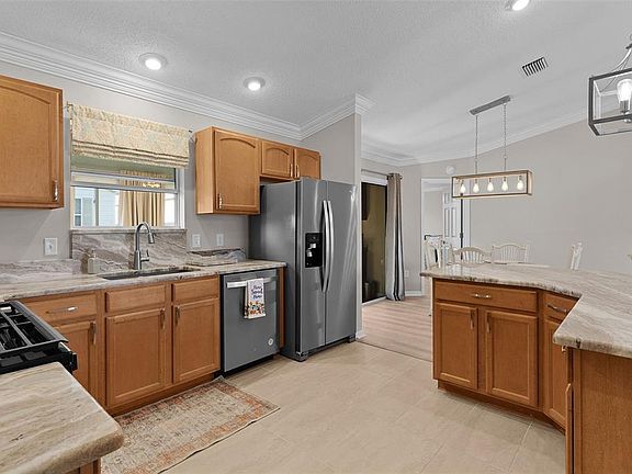 MOVE IN READY HOME with privacy in the back! Come see the changes! NEW ROOF 2025. NEW VINYL PLANK FLOOR (2025) IN LIVING ROOM, DINING ROOM, BEDROOMS AND FLORIDA ROOM - NO CARPET! A/C 2024 -UPDATED PRIMARY SHOWER! NEW SOD (coming soon!)! Furniture available separately. TIME TO COME TAKE A LOOK AT THIS BEAUTIFUL HOME WITH A FLORIDA ROOM!! No "kissing Lania's" here! Your new home backs up to patio villas (with no lanai in the back of the home). HOW FABULOUS to not have a lanai backing to yours! This gives YOU the PRIVACY you are desiring! Vaulted ceilings are a MUST and this Beautiful Austin Model accentuates this feature with extra wide crown molding! Carefully chosen granite countertop and undermount sink in the kitchen bring together the cabinet color with the tile flooring which make this area a focal point of the home. The screen lanai is now a Florida room with modern, upgraded cabinets to make this room so versatile!. A cabinet-style “murphy bed” & a pull-out couch could be the perfect furniture choices to make this Florida room ideal for hosting guests, while still allowing everyday use for relaxation, exercise, office space or crafts. The primary bathroom has been updated with beautiful new tile in the shower and the floor. Upgraded bathroom counters display beautiful Cambria Quartz! Thermostat is programmable by a phone app - so no worries if you left the A/C on 65 when you left for vacation! There's an APP for THAT! The Villages is an active adult community with over 3000 activities and an abundance of pools, recreation centers and golf courses. Executive courses are included in your amenity fee, whereas Championship Courses can be chosen at an additional cost. The Village of Duval is located “Between the 66’s!” Five miles or less to Lake Sumter Landing and Brownwood where you can enjoy year-round live music, dancing, shopping & dining! just around the corner from the Seabreeze Regional Recreation Center where residents can choose from a wide range of activities such as cards, ping-pong, line dancing, “tennis-volleyball”, bocce, pickleball & more! The sports pool is a high attraction for lap swims, water volleyball & aerobics. Here you also have a weight room (additional fee)! Beaches can be enjoyed on a day trip on the Gulf side approximately 1 hour and 15 min away. Or enjoy the Atlantic side, which is closer to an hour and a half. Enjoy visiting Disney with just about an hour or so away! Bond balance $9694.08 (Yearly maintenance portion $585.85 & bond portion $1213.29) ROOF 2025!A/C 2024 - Information deemed reliable but should be independently verified.