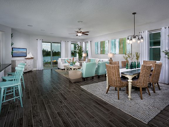 This home features a Traditional exterior that offers great curb appeal. Moving inside, you'll find an open concept floor plan with 9-ft. ceilings and beautiful wood-style vinyl plank flooring throughout the common areas. As you move through the front hall, you'll find an expansive great room and adjacent kitchen that offer gorgeous lake views. The gourmet kitchen features an eat-at island, 42-in. upper cabinets in Antique White with crown molding, granite countertops, a sizable pantry, and Whirlpool® stainless steel appliances, including double ovens. The master suite boasts a tray ceiling, and the master bath includes a walk-in shower with tile surround, quartz countertops, a dual-sink vanity, and a water closet. There are two secondary bedrooms separated by a large secondary bath with quartz countertops and a dual-sink vanity. This home also includes a third secondary bedroom, a dedicated laundry room, and a covered patio. Schedule your viewing appointment today!