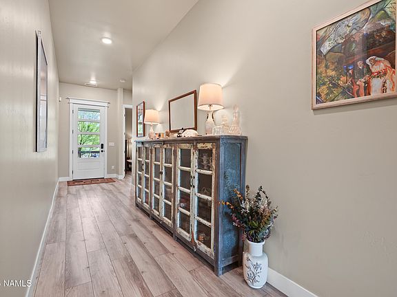 Welcome to this stunning Zero Energy Ready home in Flagstaff's Crestview community. This 3-bedroom 2-bath home offers a perfect blend of modern luxury and sustainable living. Enjoy soaring 10 ft ceilings, luxury vinyl plank flooring, premium soft close cabinetry, premium window coverings, and central air for those warm Flagstaff summer days. This kitchen is a true standout with granite countertops, under-cabinet lighting, 42'' soft-close cabinets, a large pantry and center island—perfect for entertaining. The spacious primary suite boasts a huge walk-in closet, stylish barn door, and a private toilet room. Take advantage of low energy bills with spray foam insulation, tankless water heater and high efficiency furnace. The backyard forest views and wildlife are absolutely stunning!