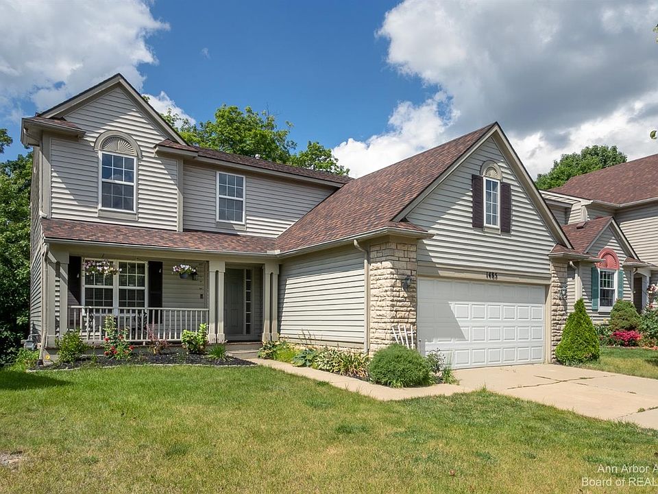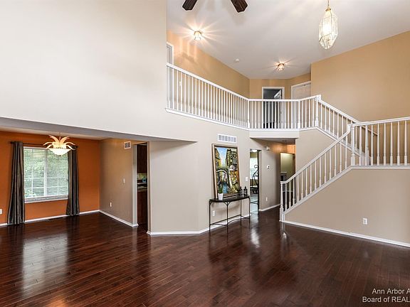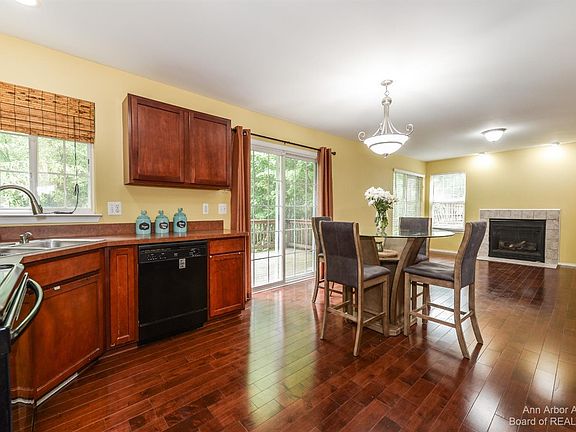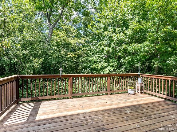 Welcome home to this beautifully updated 2-story home in the popular Ravines neighborhood! Situated in the back of the neighborhood on a private lot, this beautiful home features an inviting 2-story foyer, vaulted ceilings, hardwood floors, plenty of natural light, and first floor laundry. Recently updated kitchen includes new quartz countertops, new island also with quartz countertops, updated cabinets, stainless steel hood vent, farmhouse sink, and coffee bar. Spend time outdoors on the front porch or on the spacious back deck overlooking a wooded area. Retreat upstairs to the primary suite with vaulted ceiling, spa tub, dual vanity with quartz countertops, and walk-in closet. Also on the upper level are 2 more bedrooms that share the second full bathroom. The walkout lower level is completely finished with new carpeting, full bath, daylight bedroom, and two storage rooms. You will love the shaded, quiet enjoyment on the lower walk-out level! Play outside at one of the many outdoor spaces, including walking paths, 3 acre park, tennis court, sand volleyball pit, and gazebo. Residents take advantage of their proximity to downtown Ann Arbor, Scio Twp taxes and children attend Ann Arbor schools