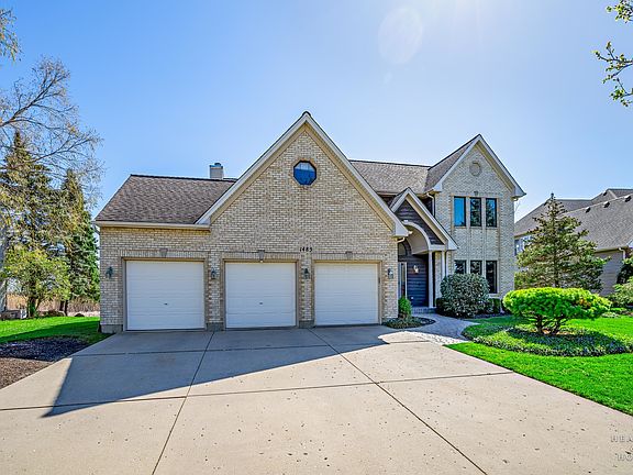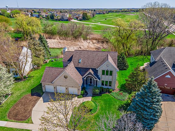 Explore this charming home situated on a golf course lot, offering serene views and privacy. Enjoy the warmth of Brazilian hardwood floors throughout the main level. The two-story foyer leads to a formal living area & dining space with large windows that fill the space with natural light. The kitchen has been tastefully updated with red birch cabinets, granite countertops, and stainless steel appliances. A sunny eating area with patio doors opens to the paver patio. Sunlight streams into the home through Pella windows. Relax in the family room with a cozy fireplace. Convenient main floor laundry room provides extra storage. Retreat to the master suite with vaulted ceilings, a deck, and an updated luxury bath with heated floors and a spacious walk-in closet. Additional bedrooms and an updated hall bath offer comfort for guests or family. The finished basement includes a large theater room perfect for entertaining. Plenty of extra storage included in the utility room & crawlspace. Outside, the mature landscaping creates a peaceful environment. Walk to the park and enjoy nearby shopping and easy tollway access.
