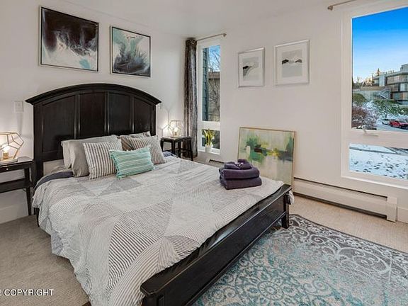 Downtown Anchorage living at it's best, located in Bootlegger's Cove. Gorgeous architecture with modern finishes and fixtures. Beautiful inlet view. Available now. No Smokers. No Pets. Tenant pays gas, electric, garbage, internet/cable if desired Photos are of similar unit furnishings