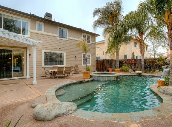 From the moment you set foot on the property, you know this home is special! You are greeted by the beautiful stamped concrete driveway and attractive slate tile walk way and front porch. Enter the foyer of this Greystone Mill Creek home and you will want to just pause and take it all in! Classy. Elegant. Inviting. The bright, open floor plan allows for gracious entertaining as well as easy day to day living. A winning combination! Imagine holiday celebrations and gatherings with friends. In preparing for these festivities, you will thoroughly enjoy the upgrades of this amazing kitchen which features attractive granite countertops, rich cherry cabinet doors, functional island, wine refrigerator, and even a convenient hot water dispenser. The beautiful hand-painted grape border reminds you that you are residing in wine country! Share your culinary delights together in the dining room and then settle in to the cozy living room for more memory making and good conversation! Time to relax? Grab a blanket and put your feet up. You are ready for family movie or game night in what is sure to be one of your favorite spots in the house. Accented by a gorgeous hand painted mural, the cozy fireplace and faux finish walls offer a unique warmth to this incredible family room. When it is time to get down to business, the office area with its built in cabinets and desk area offer the perfect, quiet space to think and plan. The extra touches in this home are many and will bring a smile to your face....crown molding, upgraded baseboards, mirrored closet doors, new carpet, beautiful hardwood and granite flooring, numerous built-in cabinets, new faucet sets, extra storage areas above master closet and underneath the stairs, and an electronic air filter. In addition, energy efficiency is where it is at! With LED lights throughout the home, a T Creator Navien tankless water heater, a thermostat regulated gas fireplace with blower, ceiling fans and solar heating panels for the pool.....what's not to love? It is an extra bonus when your backyard is an extension of your indoor living space! You are guaranteed to enjoy many good times in this fantastic back yard. The lovely in ground salt water pool is surrounded by palm trees and showcases fiber optic and LED lights, an Acapulco lounge, and magnificent waterfall. You will also be able to master your fine barbeque skills in this wonderful outdoor kitchen featuring ice maker, sink and barbeque and is protected by the sun with a built in patio cover. In addition, side yard access allows for boat or RV storage. Tucked into this quiet, clean and well-maintained neighborhood, you will be able to make good use of the walking trails, playgrounds and fields of Altamont Creek Park while enjoying the benefits of being close to shopping and freeway access. Don't Pass This One By!