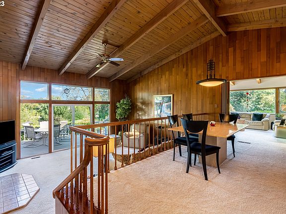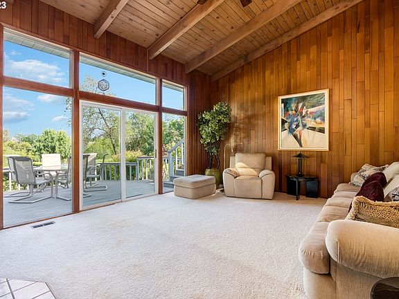 This fantastically maintained custom cul-de-sac home should not be missed! Enter to the open multilevel Family Room/Dining Room with impressive vaulted ceilings and a wall of windows overlooking the deck, lush yard and neighboring pond. Care and detail is apparent throughout with the placement of bedrooms on their own levels, laundry with built-ins and ironing board, workshop space in the garage, etc. Entertain in central Dining Room, at island counter or out on the impressive deck. Kitchen features granite counters, SS appliances & built-in range. AC & Furnace only 1 yr old! RV parking; tool shed with electricity; stone & steel tile roof; furnace room connected to garage; 3-sliders to deck; stone fireplace; Trex/wood deck (brand new paint on deck railing); additional deck pad with hot tub hookup. Very private primary suite with two closets, storage space, and a slider to deck. All appliances included! Unbeatable opportunity to be in coveted Southview neighborhood (one block from elementary and middle schools)! Nearby access I-5, 217 and 99 will make getting around a breeze. Various premium shopping and restaurants in the area to keep you entertained.