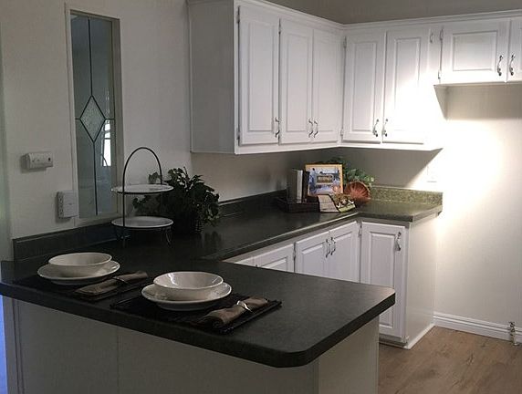 Beautiful 3 Bedroom 2 Bath Mobile Home located in the Meadows 55+ gated Community. This is a must see, the most desirable lot in the community with a beautifully manicured YARD (yes, a yard with grass and all). Perfectly situated at the end of a cul-de-sac in a very quiet neighborhood, with guest parking conveniently located steps away. The private front porch welcomes the warm summer evenings listening to the leaves blow and birds chirp. Upon entering the home you will find a formal living area, master bedroom with upgraded master bath, open kitchen, dining nook, laundry room off of the kitchen, large great room, two guest bedrooms located at the front of the home, and an upgraded secondary bathroom. Designer upgrades include: new floors,new baseboards, new bathroom vanities, new bathroom light fixtures, new plumbing fixtures, mirrors, freshly painted interior and exterior. You will thoroughly enjoy your time in this neighborhood, swimming in the pool, relaxing in the spa, playing poker or shooting pool, entertaining guests in one of the many community rooms, playing pickle ball or lawn bowling, barbecuing with friends, and much more. This home has a space rent of $715 with income restriction options, buyers are subject to approval by Newport Pacific Capitol Company. This is a dream property for anyone looking for low maintenance yet amenity rich living.