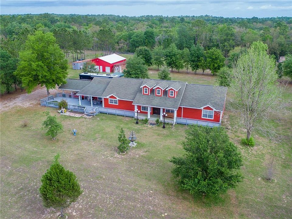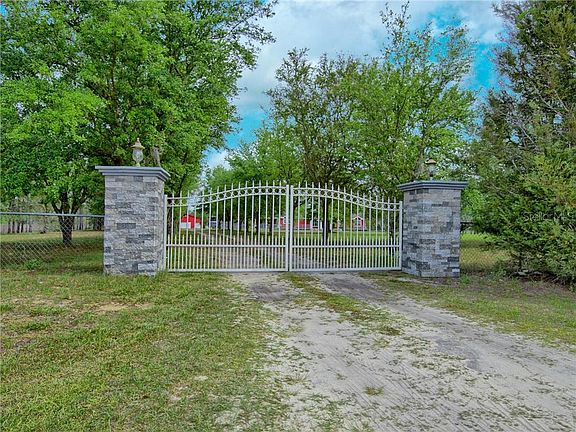 Beautiful Country Estate Home on 5 Acres! Gated private entry lined with Oaks lead to this Custom 3BR/2BA Residence w/expansive porches; constructed of concrete block w/Hardie board siding. Offers country setting; yet minutes from Publix and conveniences of town. Residence features Travertine and Ceramic Tile throughout. Gourmet kitchen has wood cabinets, gorgeous Granite tops w/island that can be used for dining, 2 stainless refrigerators, range w/convection oven, dishwasher, microwave and deep double sink. Kitchen offers lots of natural light, as does the entire home from the french doors, abundance of windows to the tall ceilings and dormers. Beautiful views of the farm from every room. Living and Dining areas are open concept, great for entertaining. Oversize Master BR offers large walk-in closet and lovely bath with jetted tub and walk in shower. 3rd Bedroom currently used as an office/media room; great for working from home. There is a 2-car attached carport, 20'x41'; 13' high RV Cover & Hookup; detached 1,360 SF insulated workshop/garage with electric which is a great addition. Central to Williston, Ocala, Dunnellon and Gainesville for shopping and conveniences of town. Also, nearby Crystal River which offers Gulf access -- premier fishing. Close proximity to the Goethe State Forest for miles of trail riding; or ride the roads of Fox Grove Farms on those days you wish to not trailer! Great soil for gardening and growing your own food. Count join us in the Sunshine State. This property offers country living at it's finest!