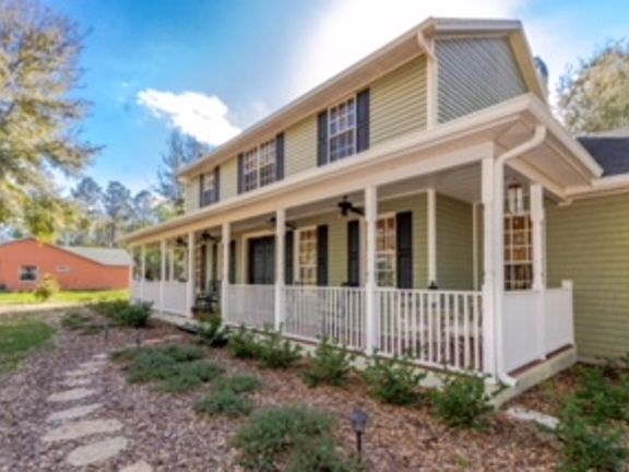 Can you hear the wind chimes blowing in the breeze? Prepare yourself for this special country-style property with a wrap around porch that screams WELCOME HOME!! Nestled within the Tampa, Florida countryside, this 2 story, custom built home lies on just under 2 acres and has all of the feels of open air and privacy, yet is only 5 minutes from all major roadways and delightful downtown Dade City. You are welcomed by the Oh So Appealing front porch, rocking chairs, and soothing sound of the wind chimes. Inside you will enjoy the gleaming hardwood floors throughout the first floor and cozy wood burning fireplace. Featured in the delightful kitchen is maple cabinetry, granite counters, pantry, and views of the sprawling backyard that surrounds this home. All bedrooms are located on the second floor, along with the laundry room for added convenience. The master suite has dual closets, jetted bathtub, dual sinks, and separate shower. Under the stairwell you will find a spacious storage room or the current homeowners use this space as a small study. Outside the backdoors you will find another oversized covered and uncovered patio, perfect for grilling and enjoying the outdoors. A 3 car, side loading garage with newly installed driveway will provide the new owners with plenty of parking. Roast your marshmallows or enjoy a glass of wine with friends at the built in fire pit on the property, which also includes a storage shed, covered RV parking, and utter privacy for your daily enjoyment!