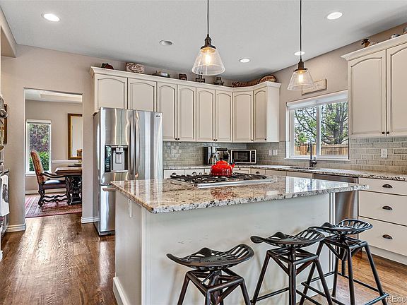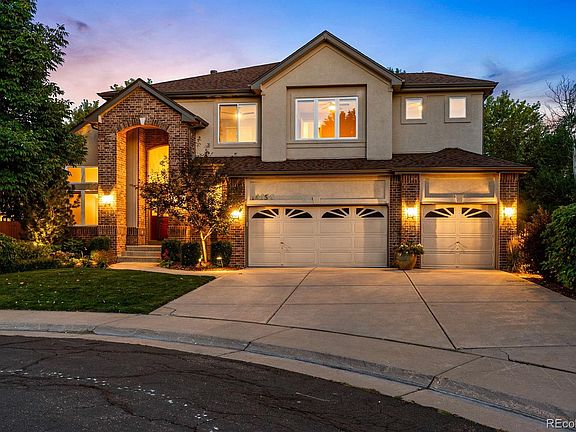 If you desire a move-in ready home on a quiet cul-de-sac within the Cherry Creek State Park with access to a wide variety of water and land activities, highly rated public and private schools, Denver Tech Center (DTC), downtown Denver, concert venues, & DIA and Centennial airports, then this is the home for you. Ideally positioned near Parker & Orchard roads with easy access to I-225 & E-470, this home boasts remarkable curb appeal on a generously sized lot, inviting you to experience warmth & luxury from the moment you arrive. As you enter, the welcoming entrance leads to a bright main floor featuring a spacious office with a picturesque view, a beautiful formal living room, & an elegant dining room. The eat-in kitchen is equipped with a large island, stainless steel appliances, a double oven, a gas cooktop, & a dishwasher. Adjacent to the kitchen, the expansive family room offers a cozy retreat with a stone wall, wood mantle, gas fireplace, & vaulted ceiling. Upstairs, the luxurious primary suite is a sanctuary of light & comfort, complete with a private balcony. The primary ensuite includes a soaking tub, dual sinks, a large walk-in shower, & an expansive walk-in closet. A charming sitting area at the top of the stairs provides additional relaxation space. Two generously sized bedrooms share a well-appointed hall bath, & the third bedroom features a large window & ensuite full bath. The newly finished custom basement adds further luxury & versatility to this impressive home, featuring two additional bedrooms, a ¾ bath with a large walk-in shower & dual sinks, a great room with stacked stone, barn wood built-ins, solid walnut hearth, & an electric fireplace for entertaining, & expansive storage area. An well-sized three-car garage opens into a spacious mud/laundry room featuring a built-in bench with cubbies & a utility sink. The large, well-landscaped backyard is fully fenced & includes a large deck, perfect for outdoor entertaining & relaxation.